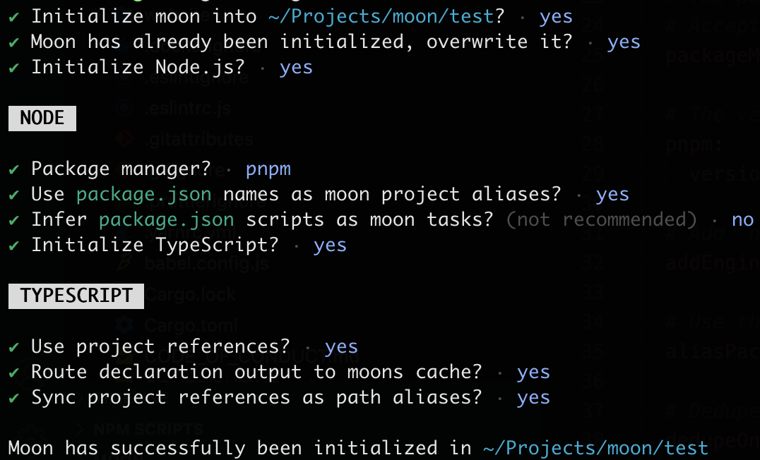 .moon/workspace.yml) into an existing moon repository, by running moon init --tool <name>.