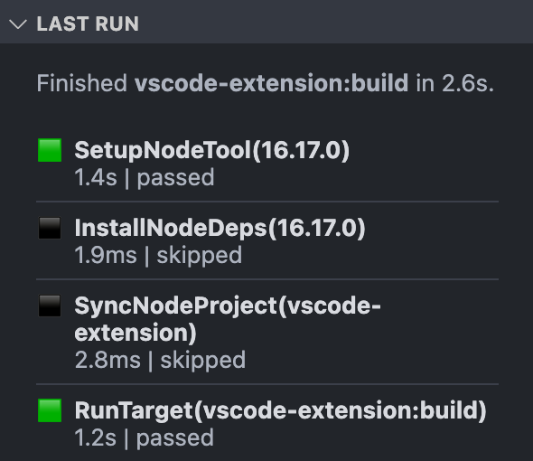 This table displays all actions that were ran alongside the primary target(s). They are ordered topologically via the action graph.